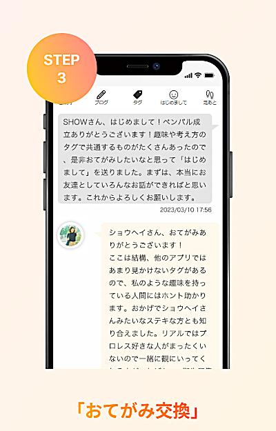 お相手から「こちらこそ!はじめまして」が届いたらふたりはペンパル!