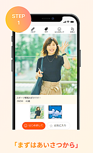 お相手検索でお相手を見つけたら「はじめまして」を送ります。